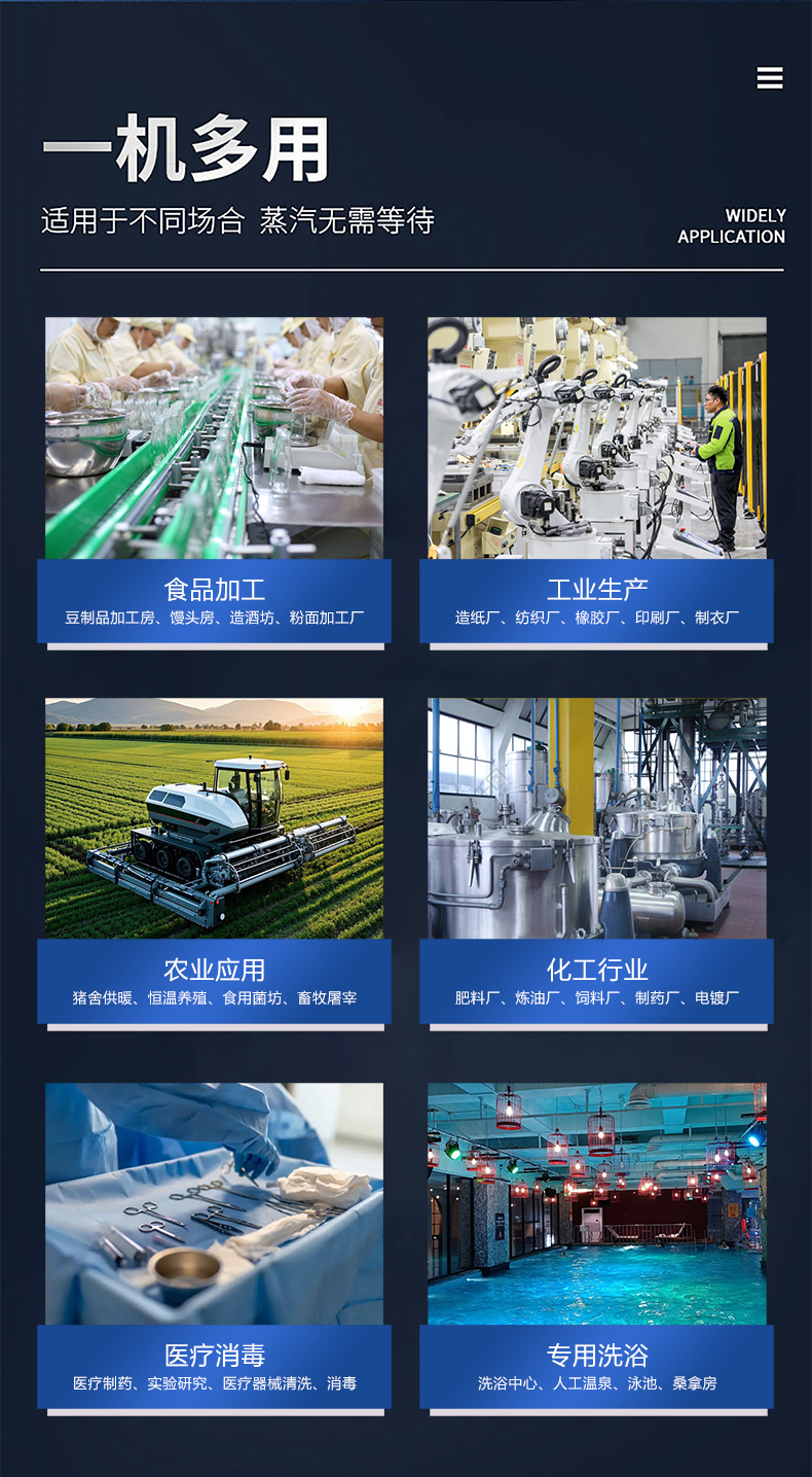 蒸汽量:50kg至6T,無內膽,水容積<29L、產汽快、免報檢,低氮燃燒NOx排放<22mg/m3,符合環保要求,310S不銹鋼過流件直流環管結構,達到衛生級別,溫度、壓力、可定制,更多參數可致電15323300918...